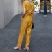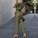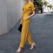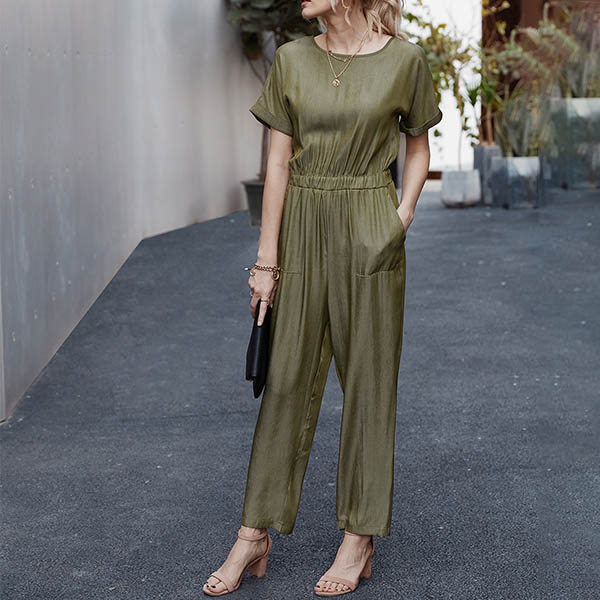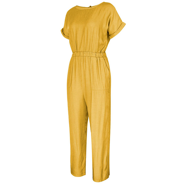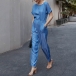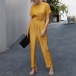 Fashion Solid Color Short Sleeve Round Neck High Waist Jumpsuit