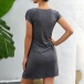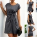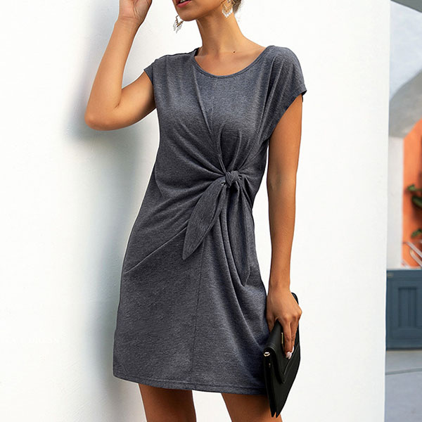 Fashion Solid Color Short Sleeve Round Neck Knotted Dress