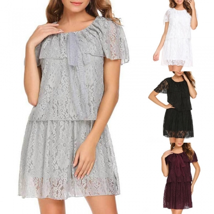 When in doubt,then make your eyes focused on this wonderful piece,you could hardly go wrong with this exquisite lace dress! Solid color style,finished with short sleeve,round neck and multi-layer design,this dress can make you look effortlessly charming and beautiful while it maintains the comfy.