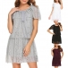 Fashion Solid Color Short Sleeve Round Neck Lace Dress