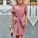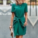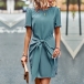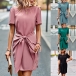 Fashion Solid Color Short Sleeve Round Neck Lace-up Dress