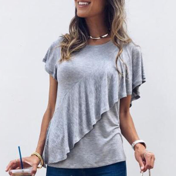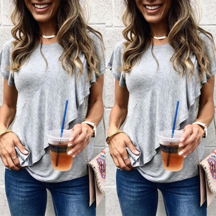 Thanks to the soft and breathable fabric,you can have a comfortable day in this t-shirt! Boasts a solid color,finished with short sleeve,round neck and ruffle design,this piece knows how to maintain your style and charm.