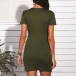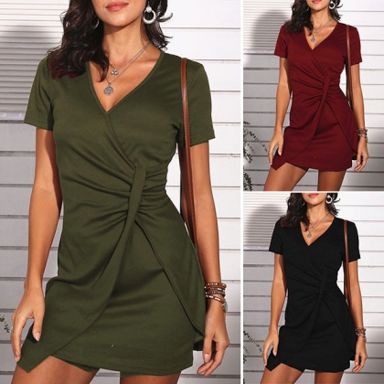 Denna delikata klänning är ditt vapen för att uttrycka skönhet och charm. Enfärgad stil med kort ärm, v-ringning och åtsittande siluett framhäver din smala figur. Perfekt för middagsdejter och helgutflykter, denna klänning är ett utmärkt val.