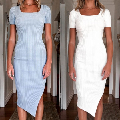 If there is one way to instantly give your image a style boost, it is by introducing this dress into your ensemble. Comes with a solid color,the fit silhouette design can showcase your slender figure,while the slit hem and square collar design can enhance your feminine appeal. Like it? Then invite it to your wardrobe!