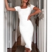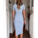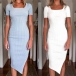Fashion Solid Color Short Sleeve Square Collar Slit Hem Dress