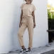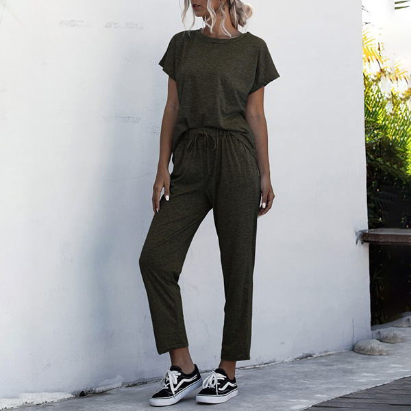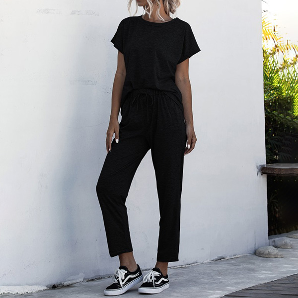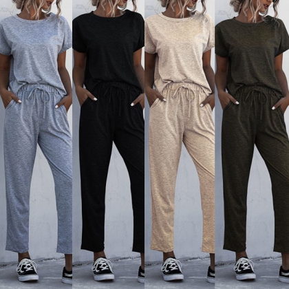 For these people who have no time to do the daily matching,this two-piece set would be a perfect solution. Solid color style,including a short sleeve round neck t-shirt and a pants,its soft and breathable fabric can give you a comfortable day. Perfect fit for your lazy days and casual weekends.