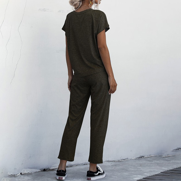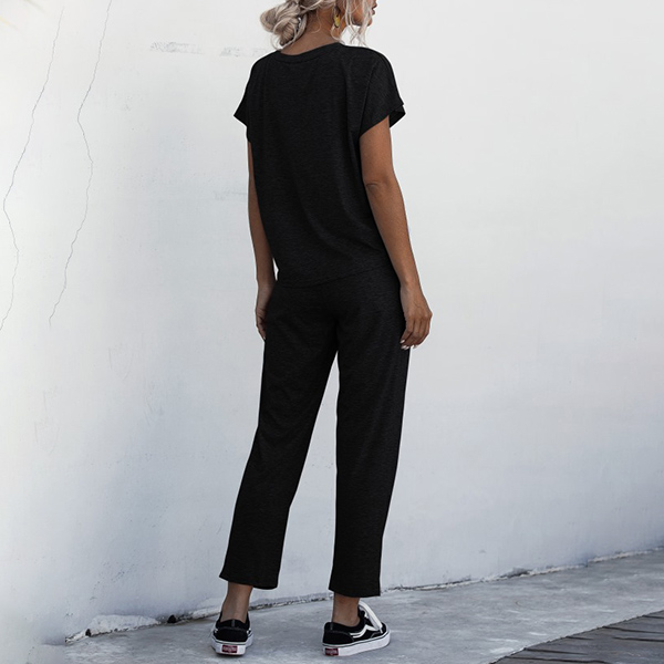 Fashion Solid Color Short Sleeve T-shirt + Pants Two-piece Set
