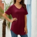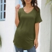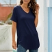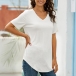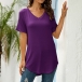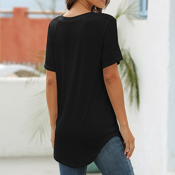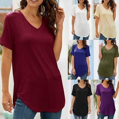 Fashion Solid Color Short Sleeve V-neck Arc Hem T-shirt