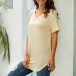 Your casual weekends call for such a simple,cozy yet stylish t-shirt. It boasts a solid color,with short sleeve,v-neck and an arc hem design,this piece can give you a comfortable day with its soft and breathable fabric. Different colors for your optional.