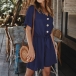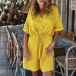 Fashion Solid Color Short Sleeve V-neck High Waist Romper