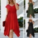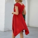 Fashion Solid Color Short Sleeve V-neck Irregular Hem Dress