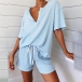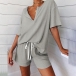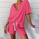 For your lazy days and casual weekends,this two-piece set is a wise choice. Solid color style,including a short sleeve v-neck top and a shorts,its soft,breathable fabric can ensure you a comfortable day. You can trust in this two-piece set to give you a casual and relaxed style.