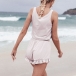 Solid color style,including a sleeveless round neck crop tops and a high waist shorts,shorts with