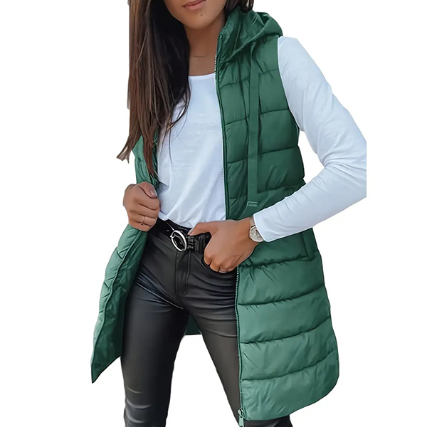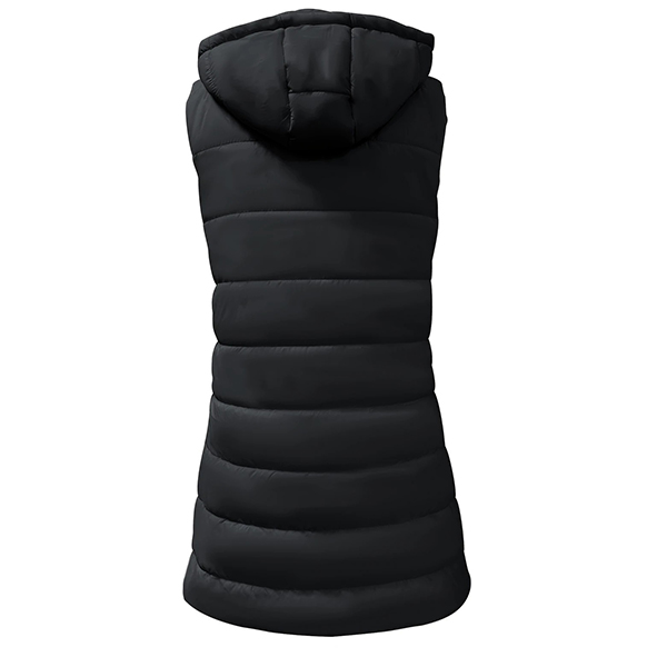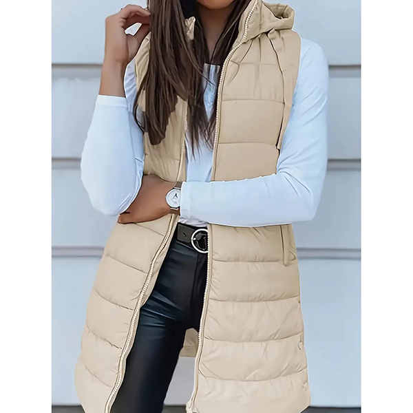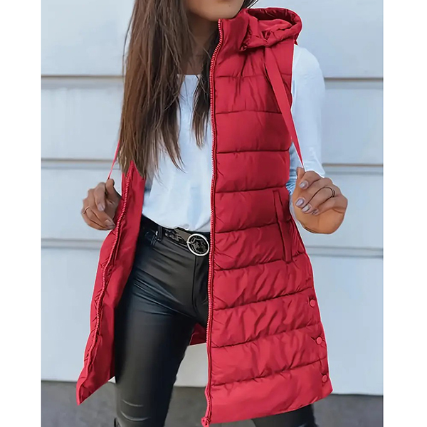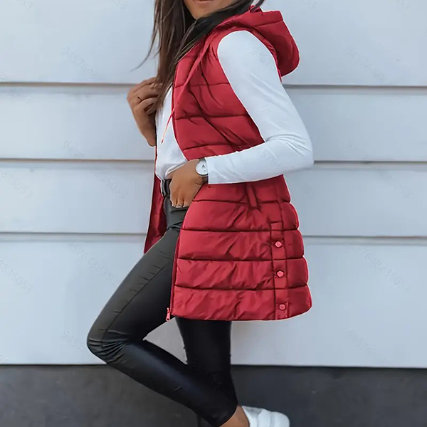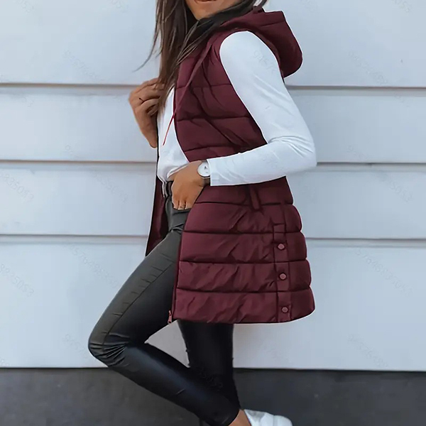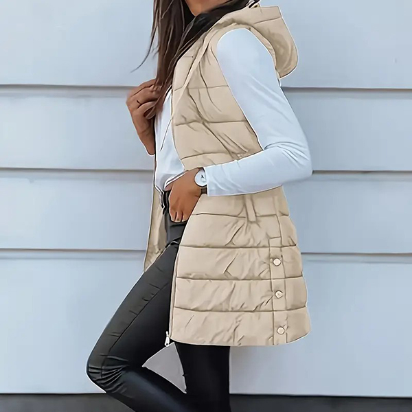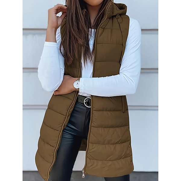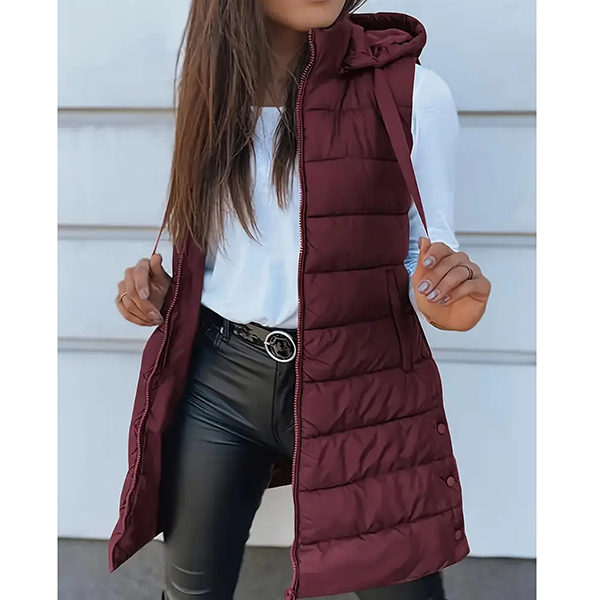 Trendig quiltad väst med huva – enfärgad & ärmlös