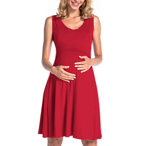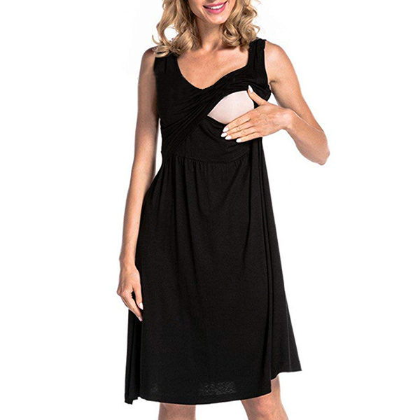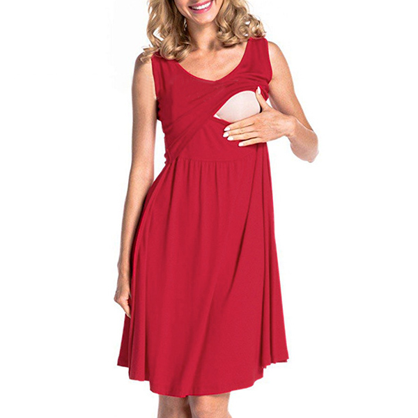 Fashion Solid Color Sleeveless Round Neck Breastfeeding Dress