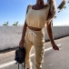 Fashion Solid Color Sleeveless Round Neck Crop Top + Pants Two-piece Set