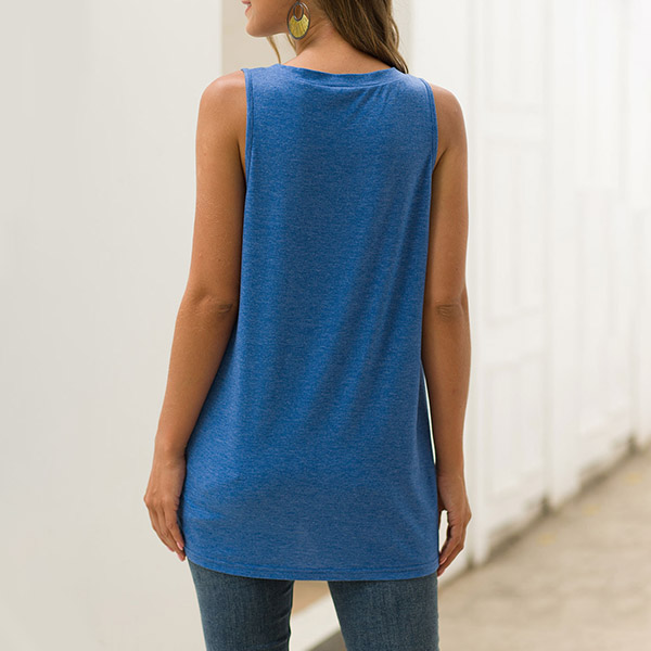 Fashion Solid Color Sleeveless Round Neck Crossover Hem Top