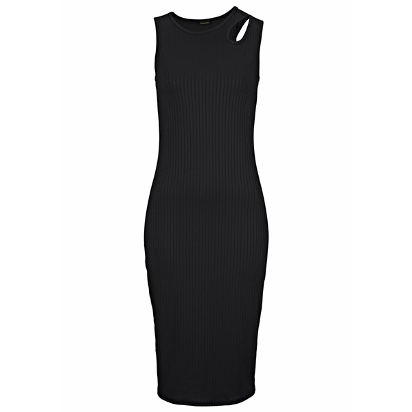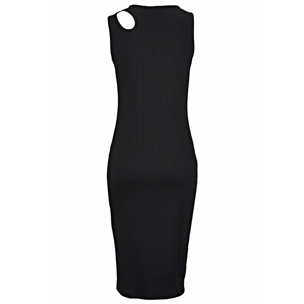 När du inte vet vad du ska ha på dig under dina stranddagar, kan vi föreslå att du väljer den här ärmlösa klänningen. Den har en smickrande svart ton och en passform siluett, som bättre kan framhäva din smala figur, medan den ihåliga designen på axeldelen kan ge lite extra charm. På dessa soliga dagar skulle matchning med dina favoritsandaler och söta halmhatt få dig att se mer perfekt ut!