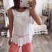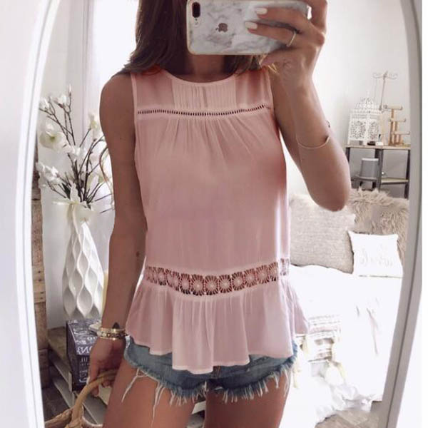 When the days get hot,this sleeveless top can easily strike your mind. It comes with a solid color,simple yet stylish. Moreover,the hollow out details will further enhance its charm. Try to match with your shorts to achieve for a simple but fashionable summer look.