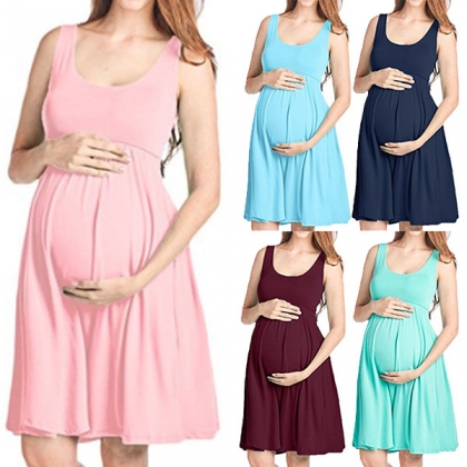 Fashion Solid Color Sleeveless Round Neck Maternity Dress
