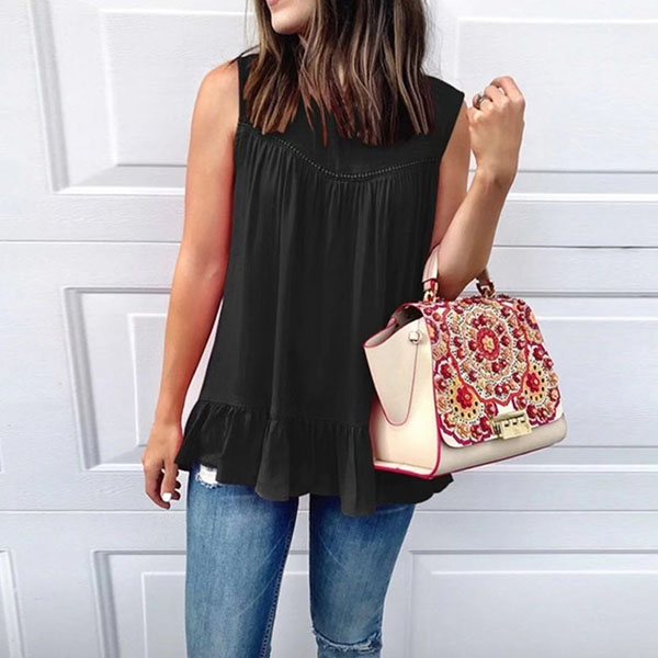 Fashion Solid Color Sleeveless Round Neck Ruffle Hem Top