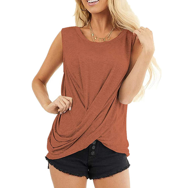 Fashion Solid Color Sleeveless Round Neck Twisted Hem T-shirt
