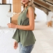 Fashion Solid Color Sleeveless V-neck Irregular Hem Top