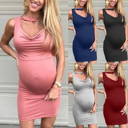 For these pregnant women,this dress is a good chance to showcase their flirty and feminine vibes. Solid color style,with sleeveless,v-neck and a fit silhouette design,this dress can ensure the comfy as well as showcase their unique body-line.