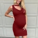 Fashion Solid Color Sleeveless V-neck Maternity Dress