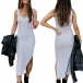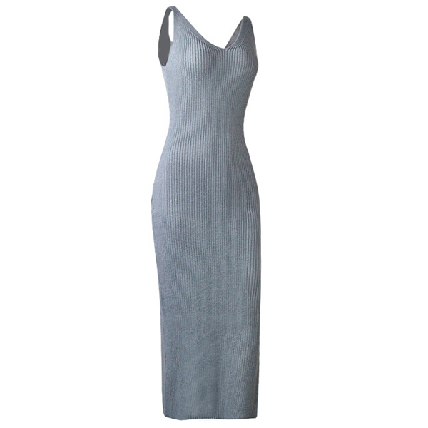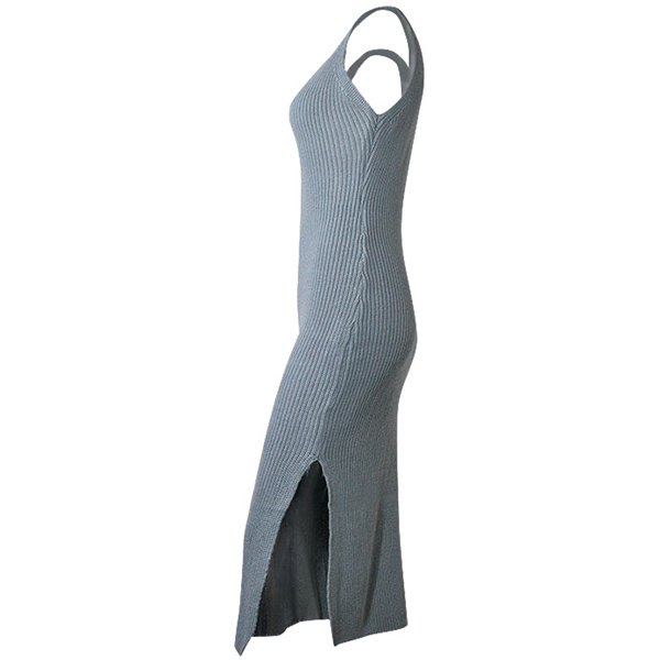Fashion Solid Color Sleeveless V-neck Slit Hem Knit Dress