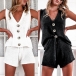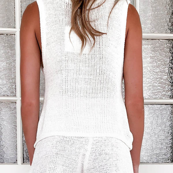 Fashion Solid Color Sleeveless V-neck Top + Shorts Two-piece Set