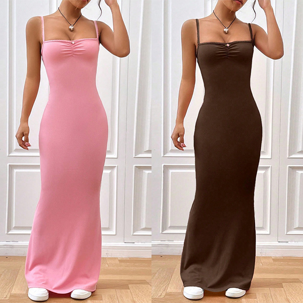 Mode enfärgad fyrkantig hals Cami Maxiklänning