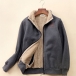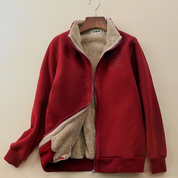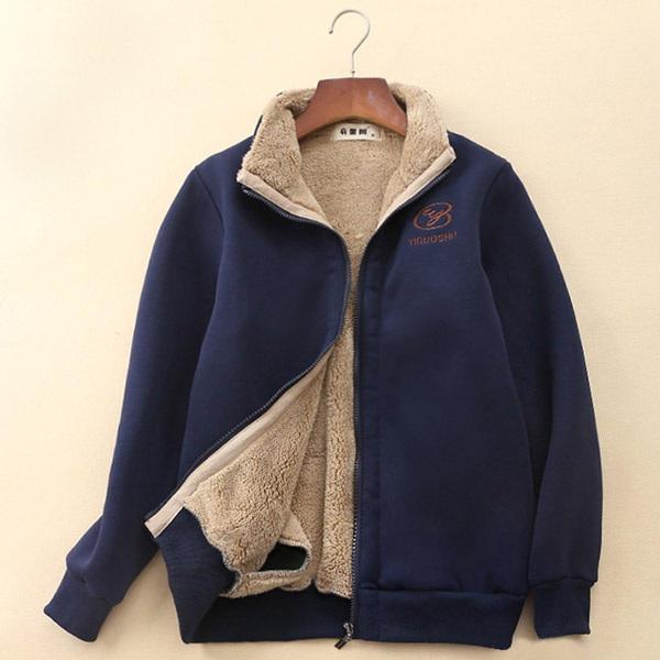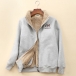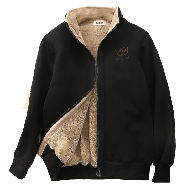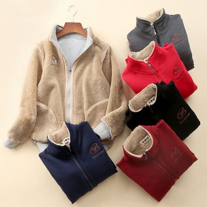 Fashion Solid Color Stand Collar Faux Cashmere Lining Sweatshirt Coat