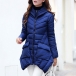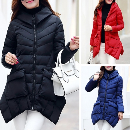 Fashion Solid Color Stand Collar Irregular Hem Hooded Padded Coat