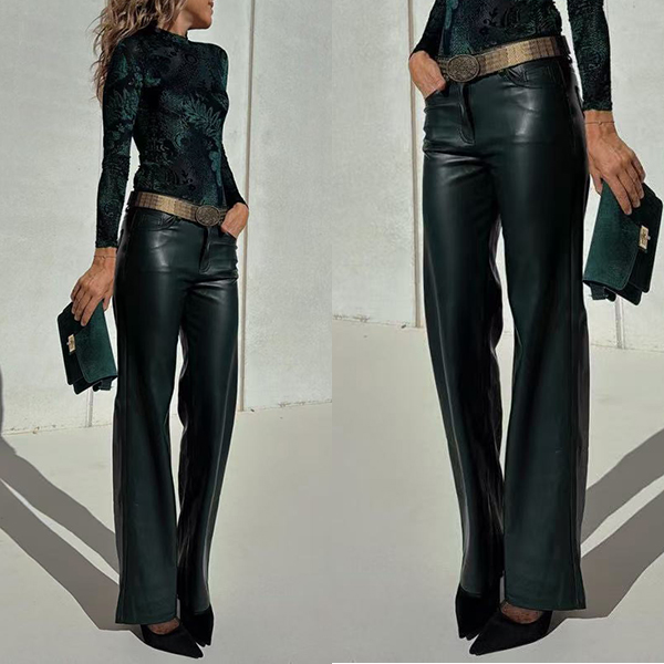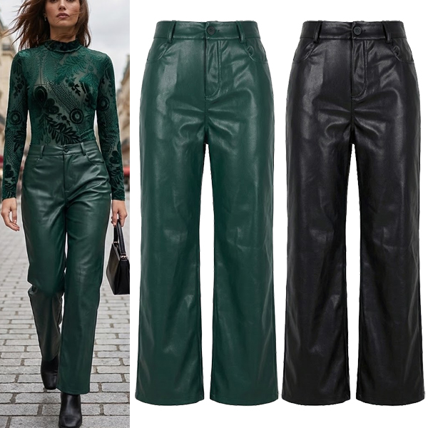 Damkonstläderbyxor i PU – raka, enfärgade och trendiga