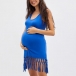 Fashion Solid Color Tassel Hem Maternity Tank Dress