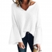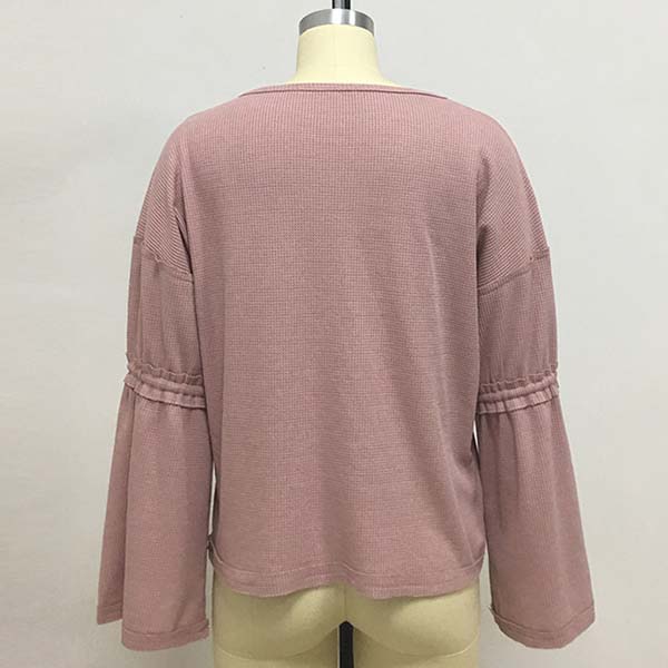 Fashion Solid Color Trumpet Sleeve V-neck Top