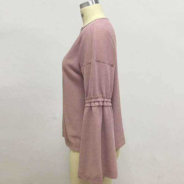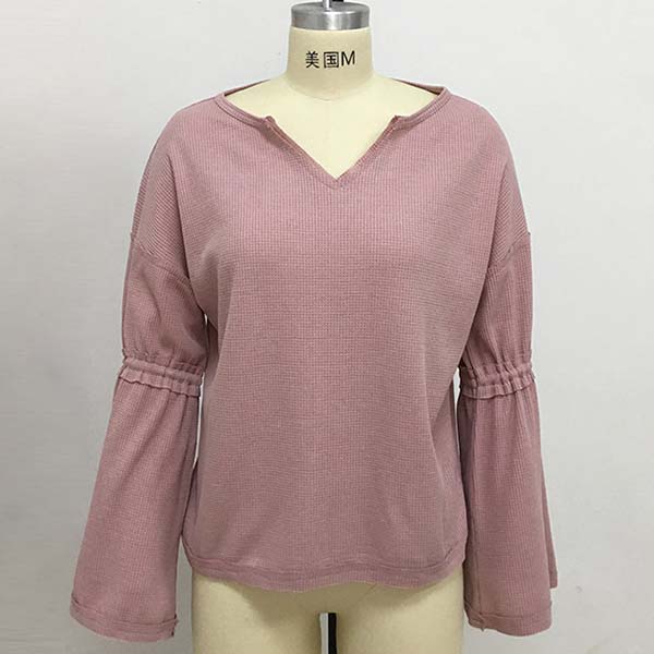 Hey,girls,you can easily boost your fashion style when you wear this wonderful top. It features a solid color,the v-neck and trumpet sleeve design will lend you a dash of sweet and feminine vibes. Thanks to the soft and breathable fabric,you can have a comfortable day in this piece. So why not add it to your wardrobe ensemble?