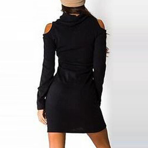 This dress is solid color while it is also designed with a turtleneck and open-shoulder long sleeves, which make it look very sexy and fashion.