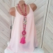 In these hot summer days,this cozy yet stylish top can easily arouse your attention. It comes with a sweet pink tone,with U-neck and a loose silhouette design,this piece can give you a long-lasting comfort. You can add a shinning necklace if you wanna look more charming.