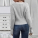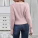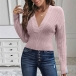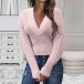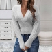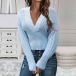 Enfärgad V-ringad Crop-tröja med Lång ärm