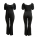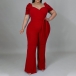 Jumpsuit dam – enfärgad V-ringad med knyt i midjan, vida ben och oversize-passform