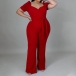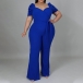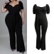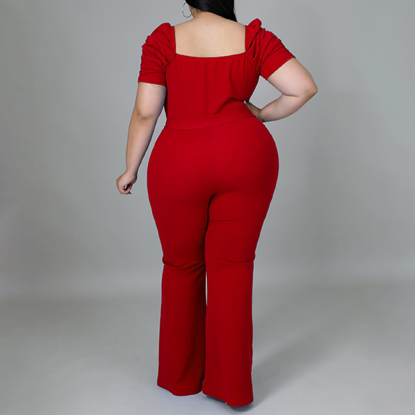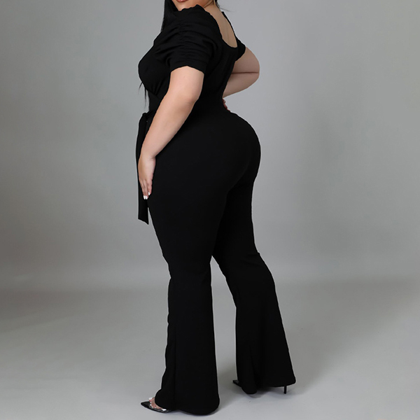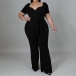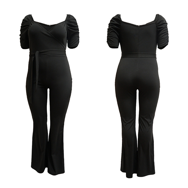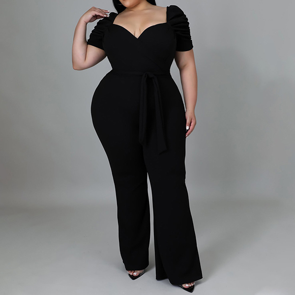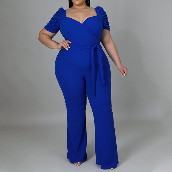 Denna jumpsuit i plusstorlek är perfekt för alla tillfällen, från en dag på kontoret till en utekväll på stan. Den enfärgade designen och V-ringningen gör den mångsidig och smickrande, medan vida ben och en knuten midja ger en dramatisk touch.