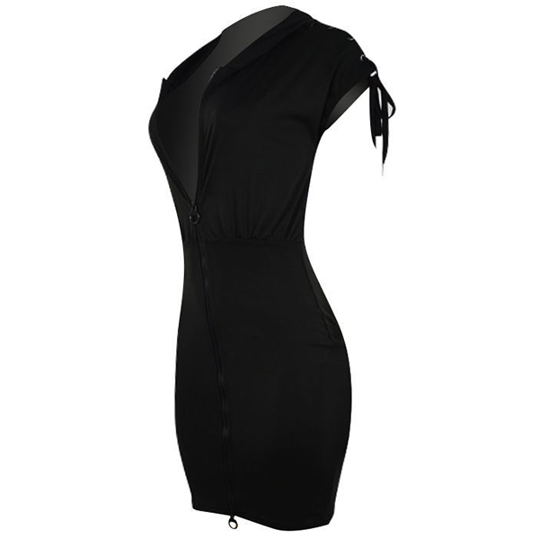 Looking for a stylish, sexy and comfortable dress that you can wear on any day? Look no further than this Hoodie Dress! Made from a soft and stretchy material, this dress is perfect for any body type. The short sleeves feature a lace-up strap, front zipper closure, and lace-up back to add a touch of edge. Whether you're headed to the office or out for a night on the town, this Hoodie Dress is sure to turn heads!
