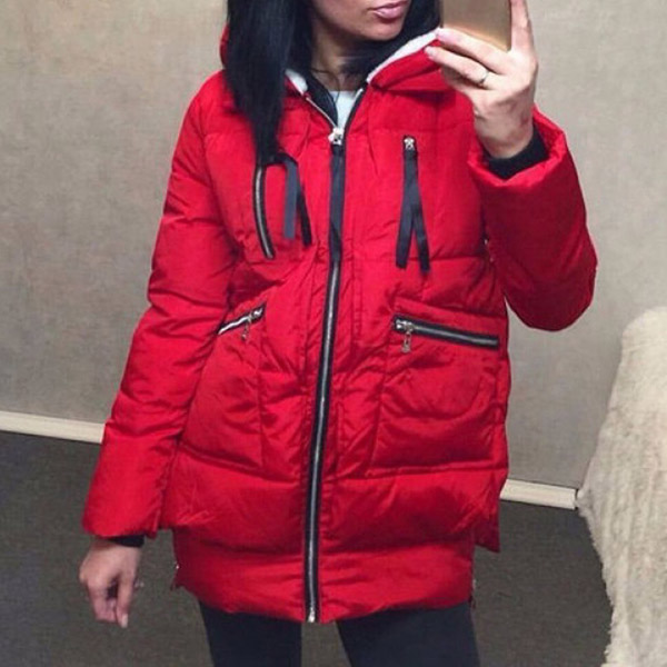 Invite this padded coat to your wardrobe to get prepared for the winter season. The hooded silhouette and plush lining design can ensure you a warm and comfortable day,while the zipper pocket design can keep your hands warm as well as keep your belongings safety. A good choice in these cold days.