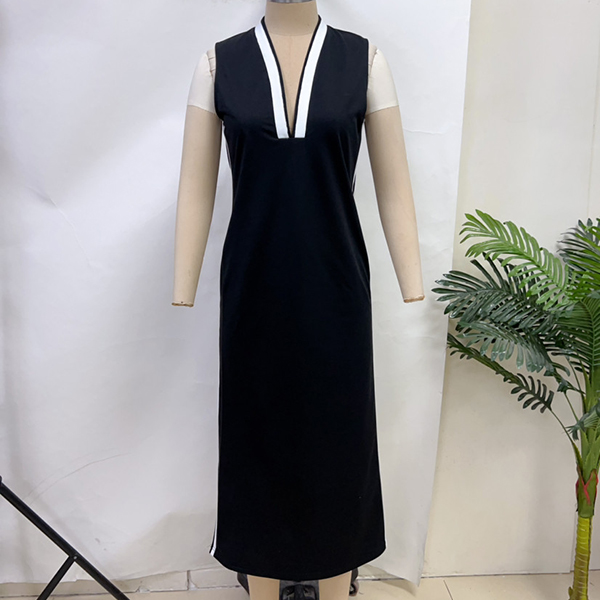 Stil : Sportiga vibbar, sexig silhuett : Kontrastrandig midiklänning