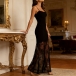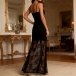 Trendig maxiklänning med fyrkantig halsringning, spetsdetaljer och skarvad design för fest