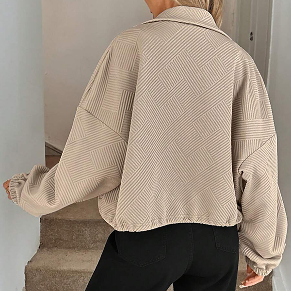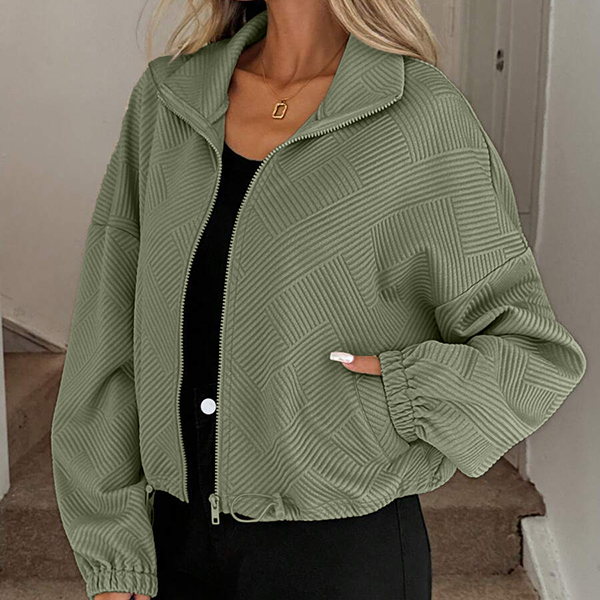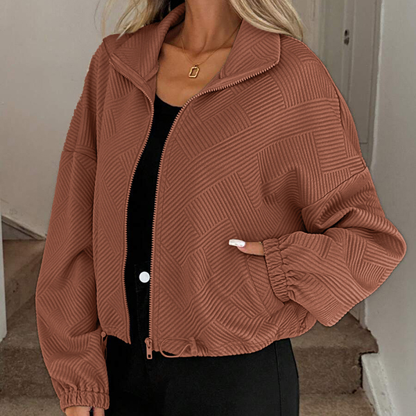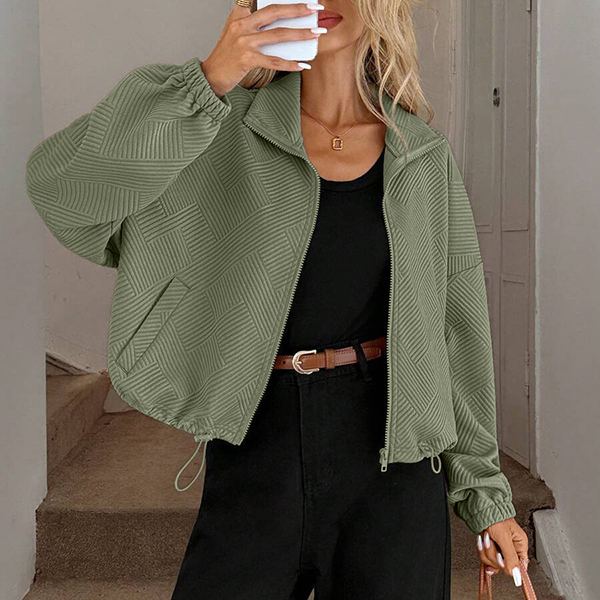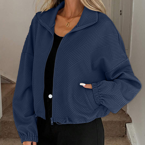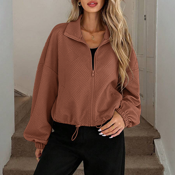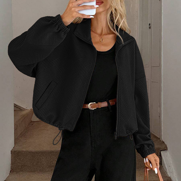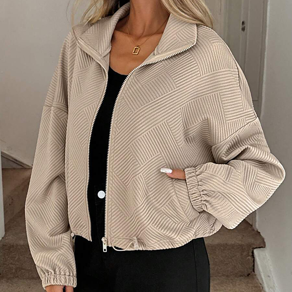 Upplev tidlös elegans med vår moderna övergångsjacka i exklusivt texturerat tyg. Den stilrena ståkragen ger en skarp siluett, medan den justerbara dragskon i nederkanten låter dig anpassa passformen för både värme och trendriktig look. Perfekt för lager-på-lager på hösten, avslappnade stadspromenader eller uppdaterade vardagsoutfits – den här jackan skiljer sig från mängden med sin unika kombination av design och funktion.