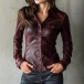Trendig damblus i PU-konstläder – stående krage, långärmad med klaffbröstfickor och framknäppning