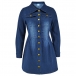 Denimklänning med vintage-tvätt och stående krage, långärmad med knäppning fram och markerad midja